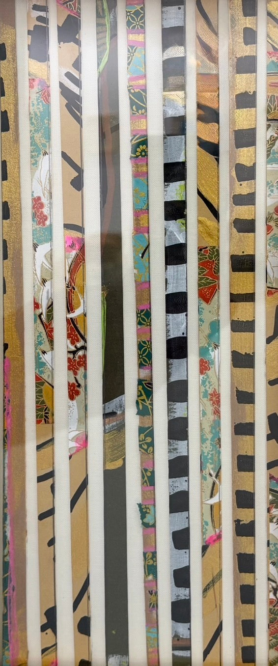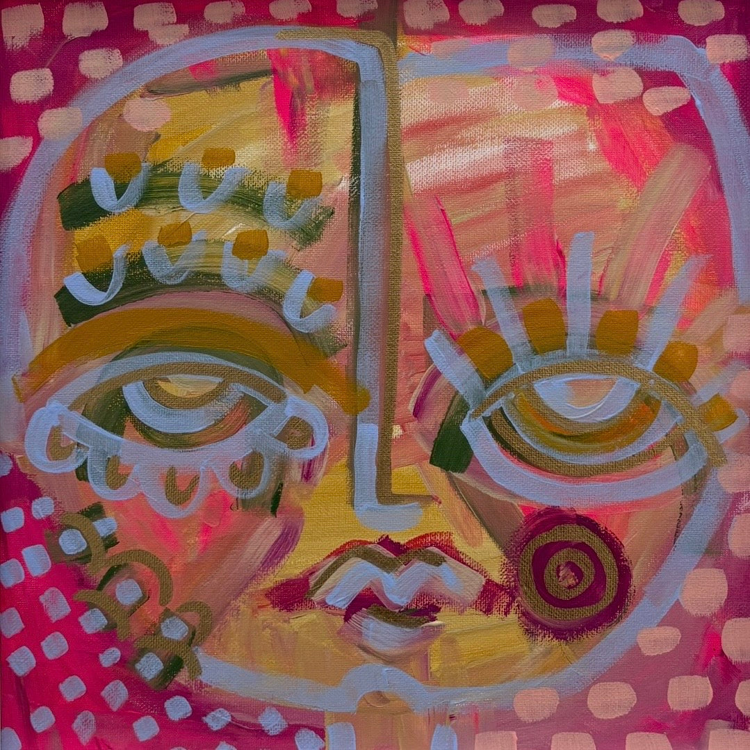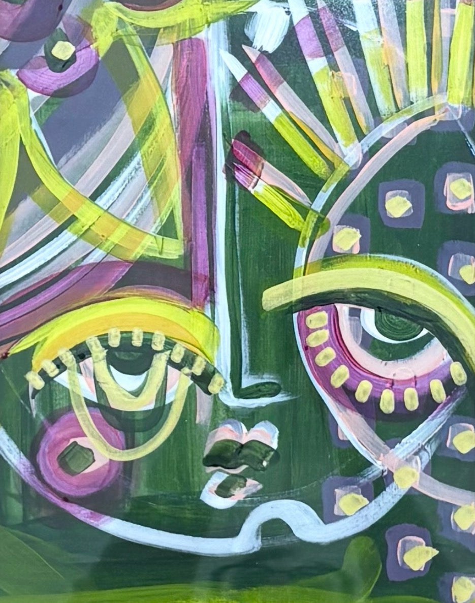 Amy Gallagher is an abstract artist specializing in modern tribal-inspired portraits. Her work is bold, intimate, and reflective of her perception of the human spirit. Amy uses acrylic, textiles, paper, and other assorted mediums in her creations to build texture and grit. Her objective is to overpower the viewer with a desire to touch and connect. Her work often originates in dream imagery during her sleep – visualizing faces and inspiration. When the expression is then realized in her conscious state, it becomes a very therapeutic and fluid process. Amy grew up in the Pacific Northwest and attended the Art Institute of Seattle, receiving her degree in Communication Arts with a focus on Graphic Design and Illustration. Amy has worked in several unique design capacities over the last 25 years, pulling inspiration from both her roots and her travels. Today, Amy owns a Marketing & PR Firm in Lynchburg, Virginia where she resides.