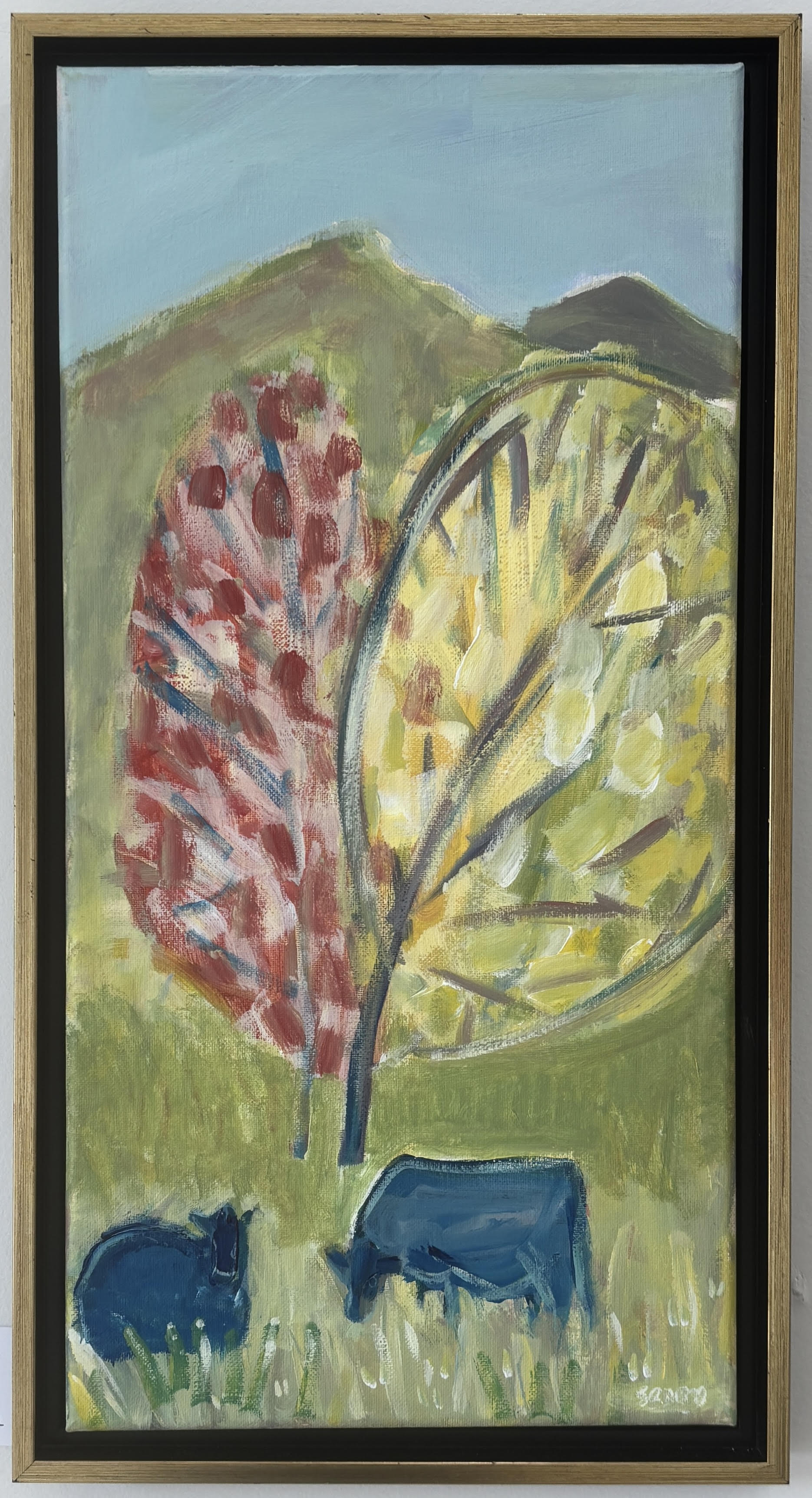 Susan’s paintings are a combination of figurative, landscape, and still life. She uses mixed media of acrylic, acrylic mediums, charcoal, oil stick, and oil pastels. Some of the work is done on reclaimed wood and materials from a local contractor that would otherwise be going to the dump.